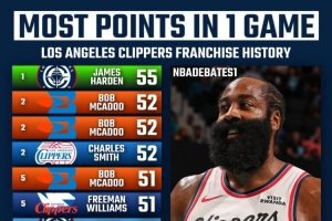 体育资讯11月23日讯 NBA常规赛,快船131-116战胜黄蜂。哈登出战35分钟,26中17,三分16中10得到55分3板7助攻1抢断,单场55分创造快船队史纪录。