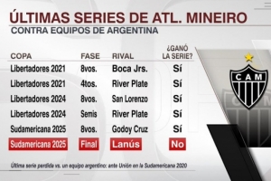 米内罗竞技2021年以来对阵阿根廷球队取得5连胜,击败博卡、河床(2次)、圣洛伦索和戈多伊克鲁斯,但此役连胜被拉努斯终结。