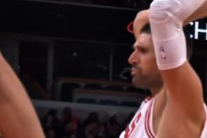 看着就痛!波蒂斯上篮被CC顶到下体 痛苦倒地