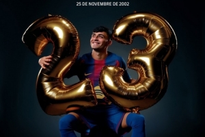 体育资讯11月25日讯 今天是巴萨中场佩德里的23岁生日,巴萨官方为他送上祝福。